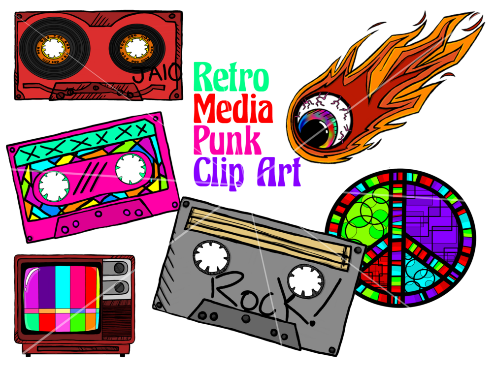 This is a set of original clip art featuring retro media and other interesting punk inspired images illustrated by Jessica Arnold.